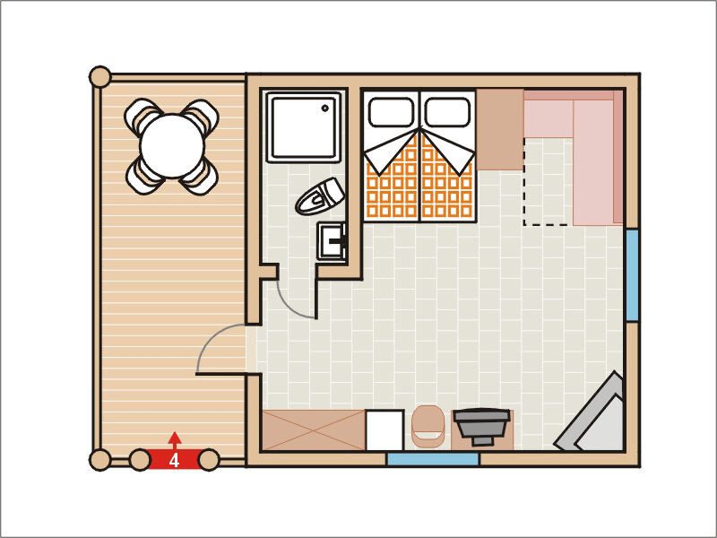 Одноэтажный однокомнатный дом. Вместимость до 4-х человек.