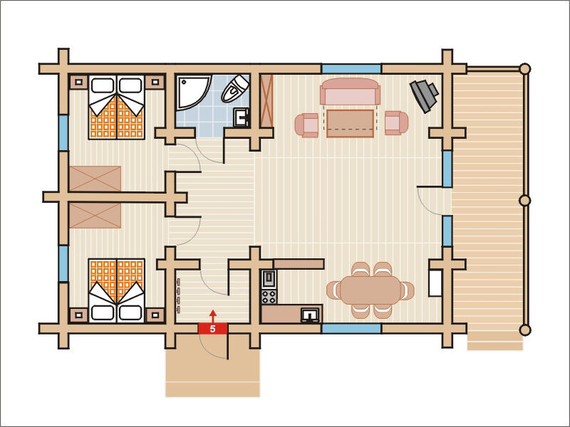 Одноэтажный двухкомнатный дом. Вместимость до 4-х человек.