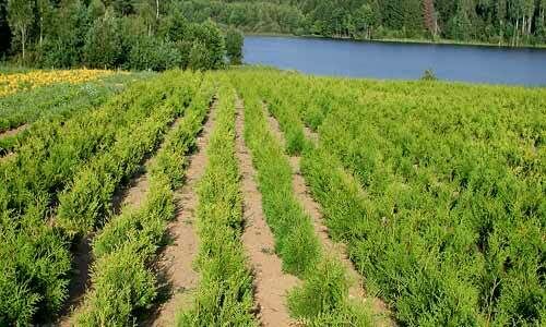 Основа питомника — хвойные вечнозеленые растения, их предлагается около 40 видов. Туя, можжевельник, сосна, ель, пихта, кипарисовик — вот небольшой перечень растений, который порадуют своим видом и зимой и летом. Все растения завозятся из питомников Германии и Польши в виде 2-3 летних растений и высаживаются на территории питомника для дальнейшего выращивания. Затем растения в результате специального комплекса агротехнических приемов укрепляются, акклиматизируются, и предлагается конечному потребителю.