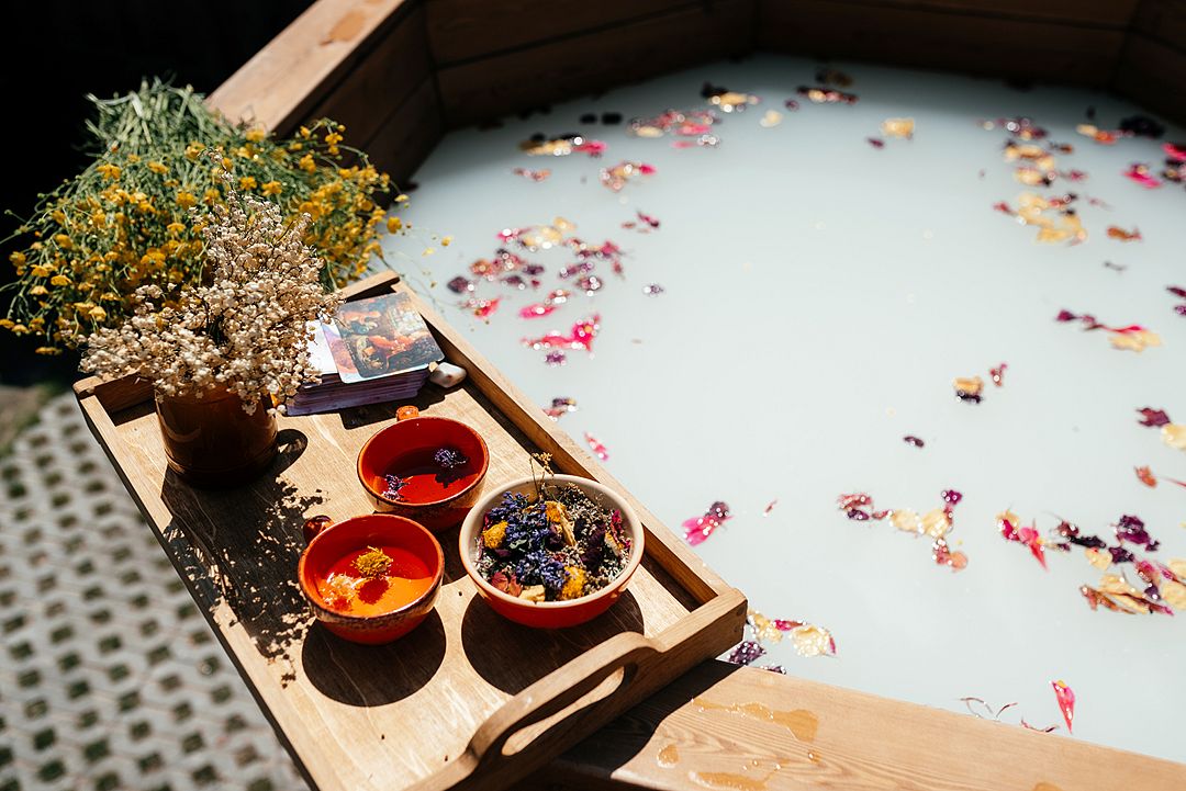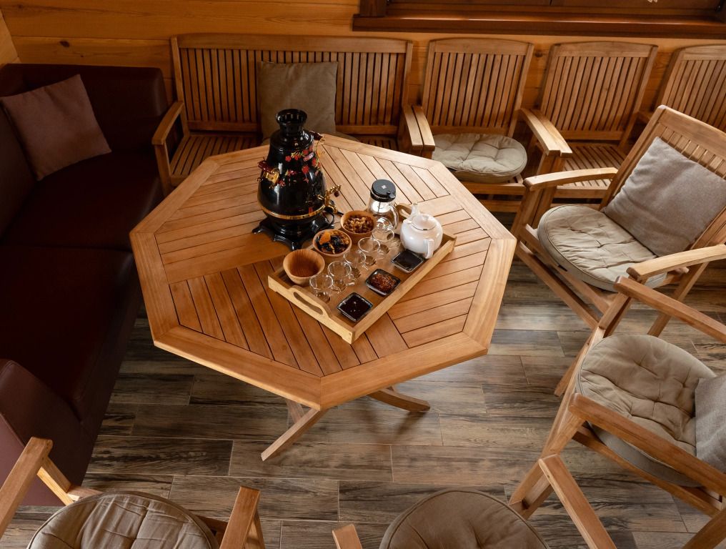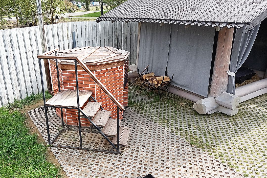 Особенность этой бани — чан с подогревом для отдыха под открытым небом. Вода в чане прогревается до 38-42 градусов, а при добавлении в неё трав можно наслаждаться потрясающим ароматом.