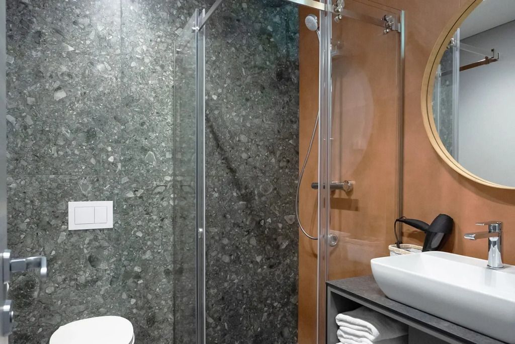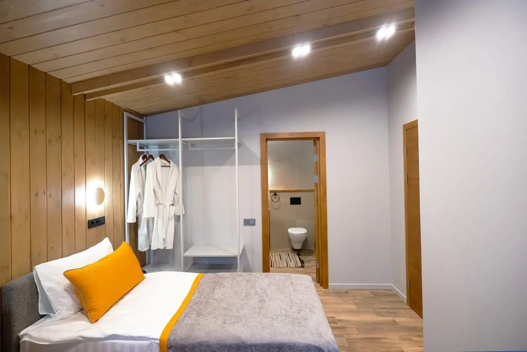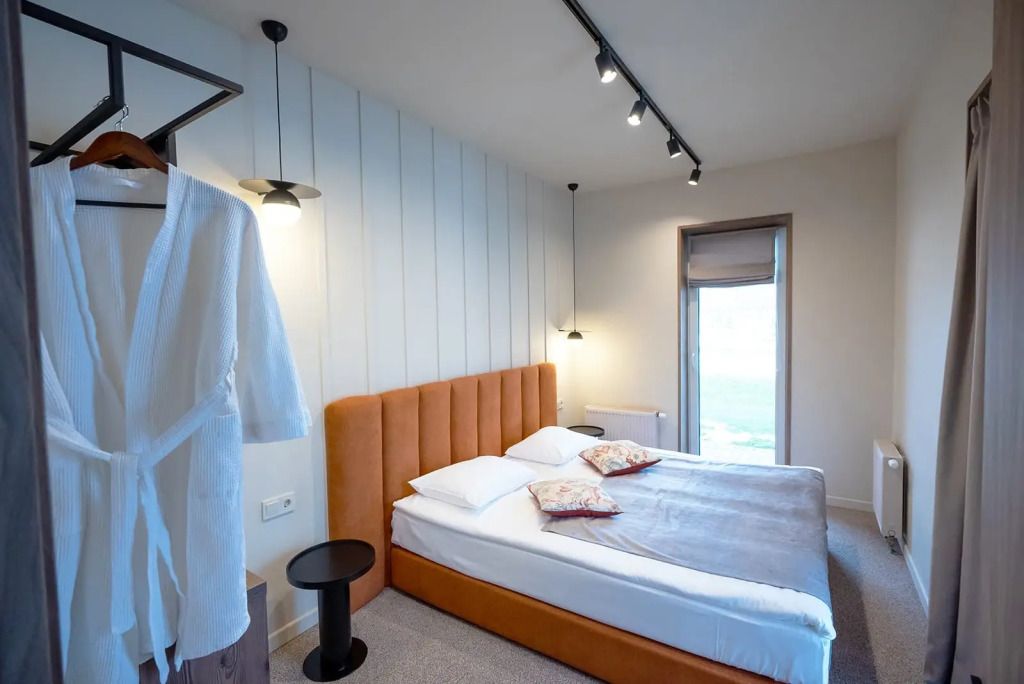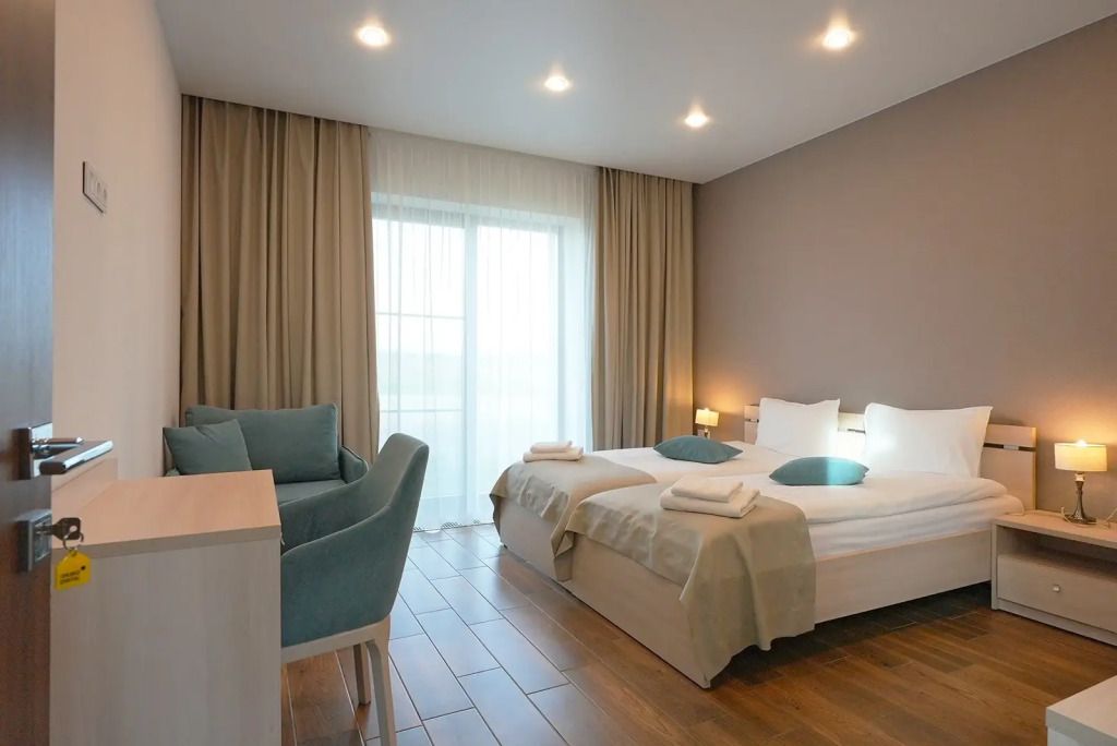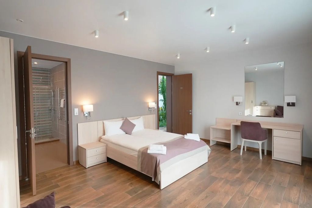 В номере вас будут ждать телевизор, мини-бар и халат. Оснащение зависит от выбранной категории номера.