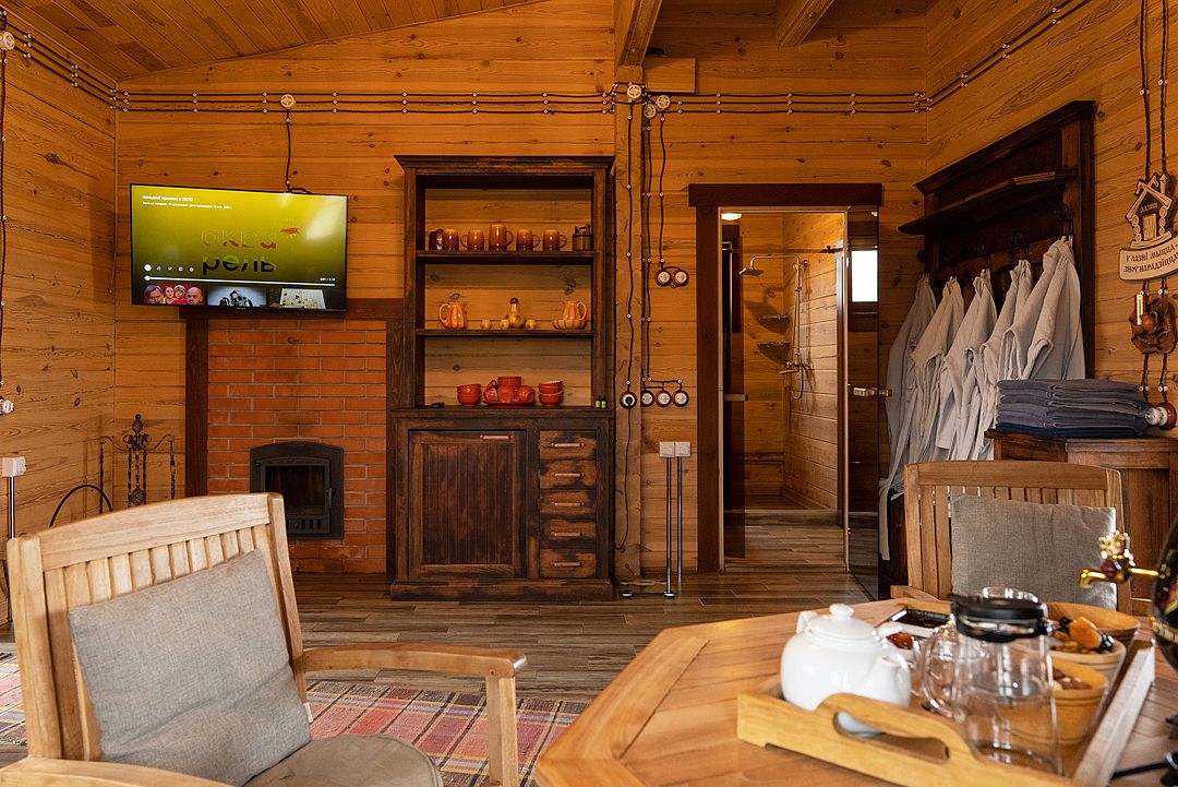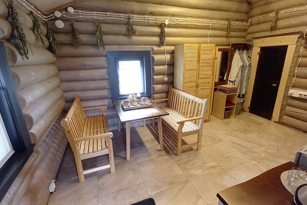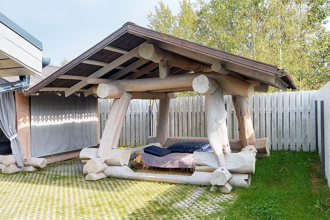 Оздоровительные процедуры помогут укрепить здоровье. Отдохнуть после бани Вы можете на террасе с прямым спуском в водоём, на деревянных качелях во дворике или расслабляясь в чане с подогревом.