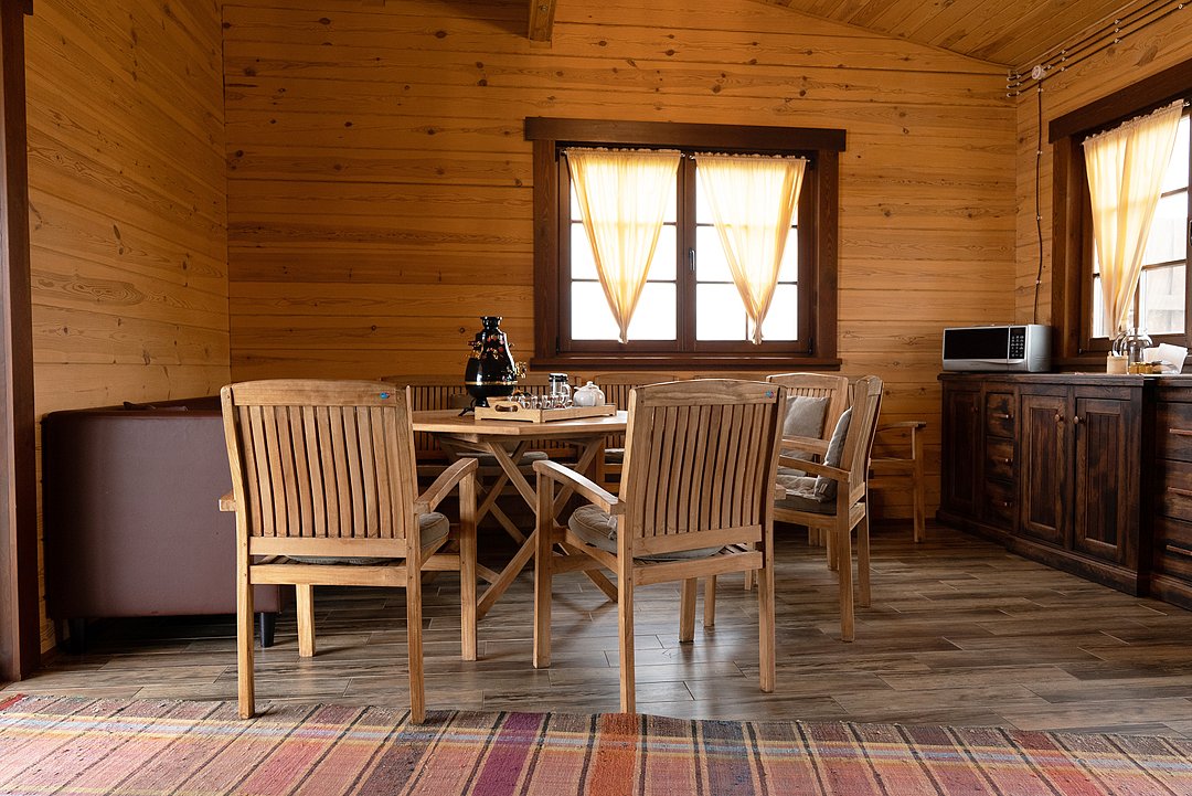 Сидя на уютной террасе, можно наблюдать, как потрескивает огонь в печи, и наслаждаться стрекотанием сверчков.