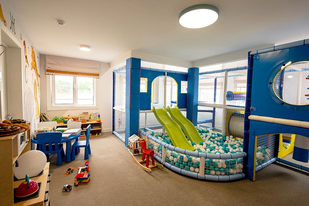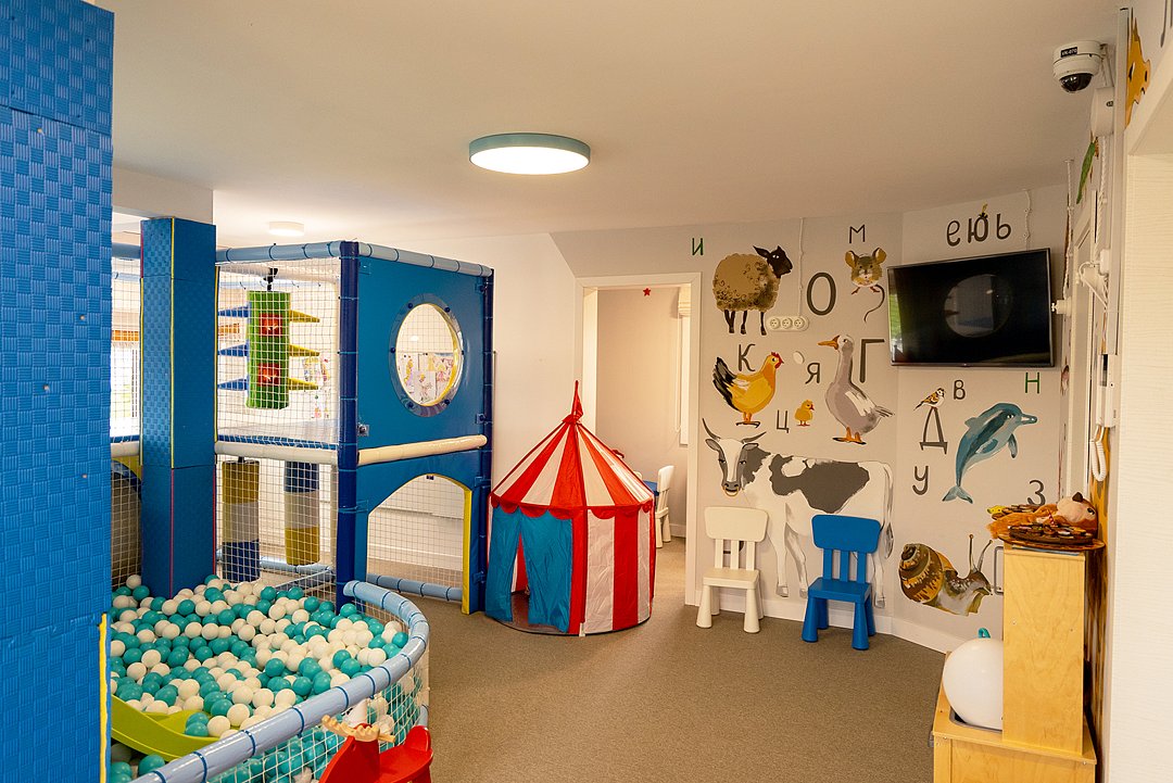 На территории детского клуба есть большая игровая комната, мини-лабиринт, сухой бассейн с шариками, надувной батут «Аэропорт», детская игровая площадка, большой шатёр для проведения детского Дня рождения и других мероприятий.