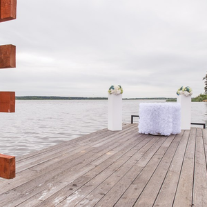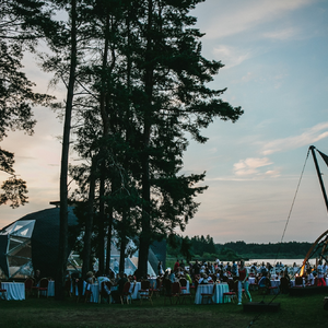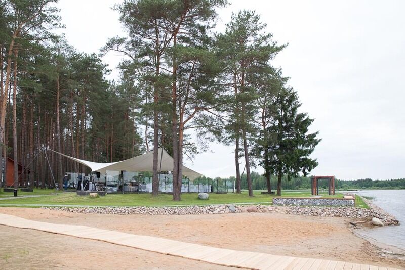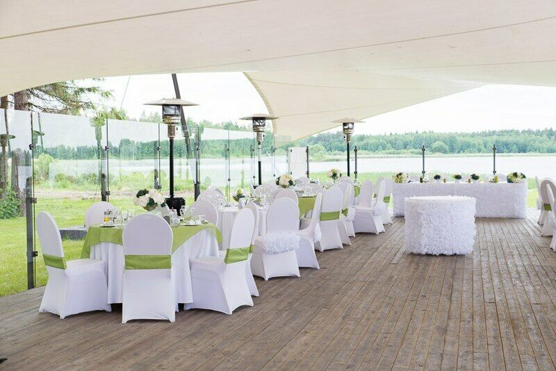 В нашем комплексе вы можете арендовать загородный банкетный зал для свадьбы. Для наших гостей мы предлагаем восхитительную старобелорусскую и европейскую кухню.- Панорамный шатер на берегу озера для летней свадьбы.