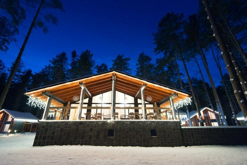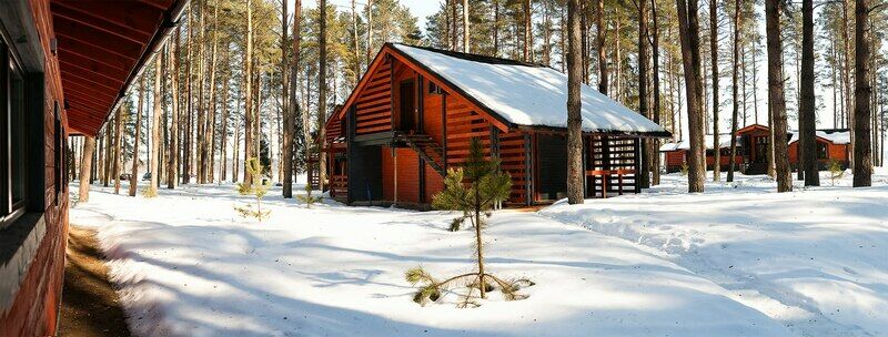Для строительства жилого комплекса «Шишки» использованы только натуральные природные материалы. Все домики возведены из бруса сосны, ее аромат ощущается в каждом номере и создает особенную ауру.
