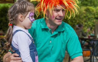 По желанию, в гости может заглянуть дрессированная собачка Лаки.