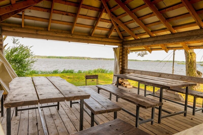- крытая беседка для приема пищи на берегу озера на 100 человек