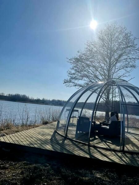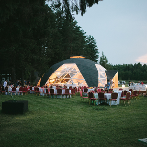 Прозрачный купол создает непередаваемое ощущение еденинения с природой и подходит для аренды в любое время года.