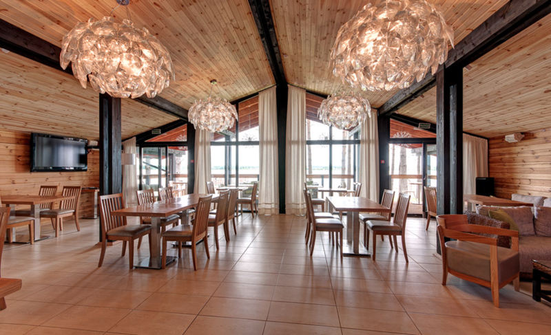 А также вы можете выбрать абсолютно любое место на территории комплекса для проведения выездной регистрации. Вам предоставят все необходимое, останется только добавить декор для оформления свадьбы в выбранном стиле.- Шикарный загородный ресторан для проведения свадьбы.