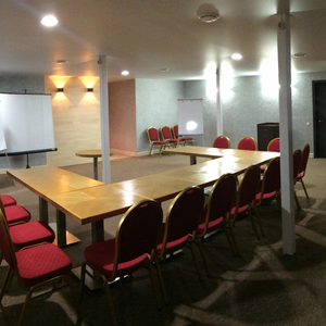 На территории комплекса функционирует современный конференц-зал со всем необходимым оборудованием: проектор, проекционный экран, 2 флип-чарта, столы, стулья. Театральная рассадка позволяет вместить в зале до 70 человек.