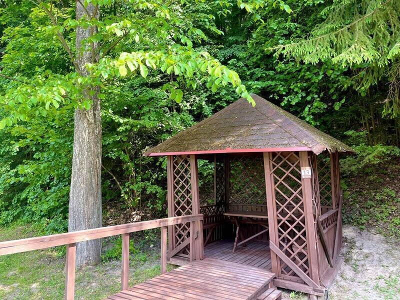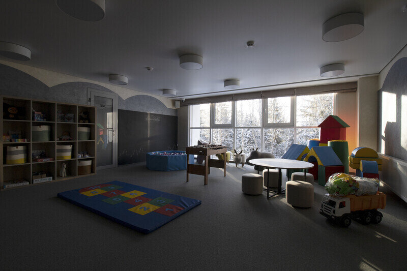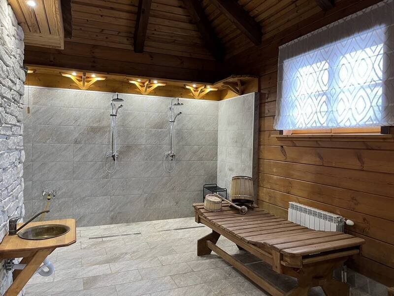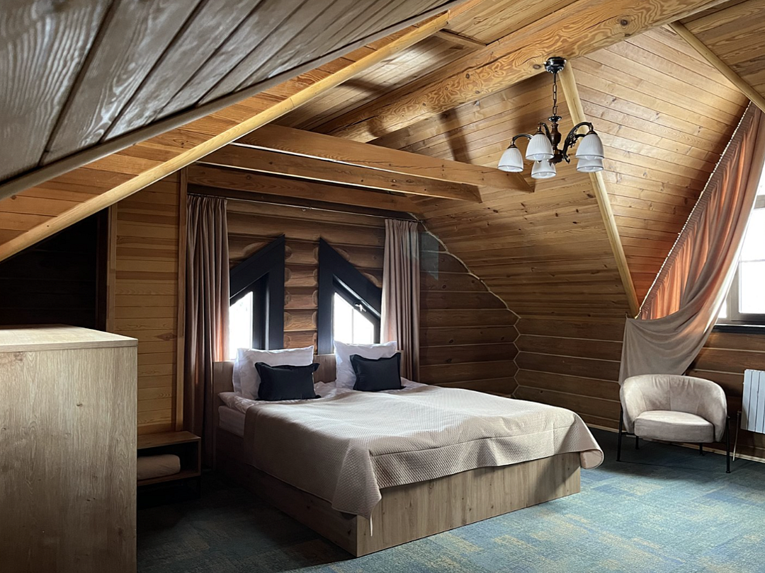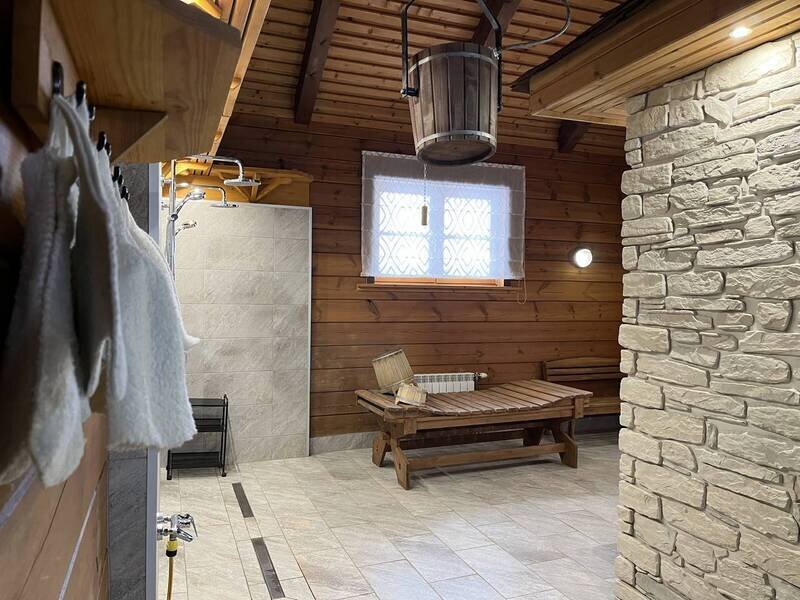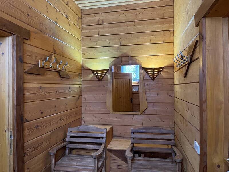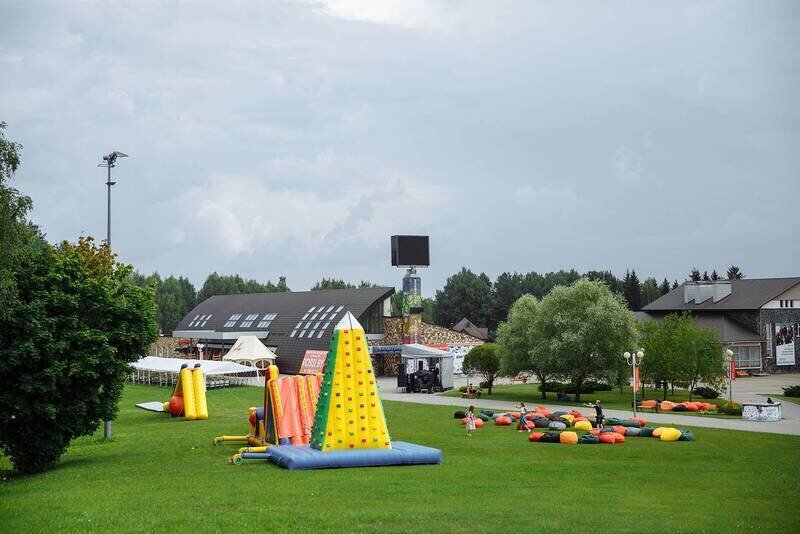 На территории центра предусмотрены зоны барбекю, возле беседок установлены мангалы и дровница с просушенными дровами, оборудованные игровые площадки для детей, возможность прокатиться на канатной дороге и испытать азарт на пейнтбольной площадке. В окружении хвойного леса расположены 10 горнолыжных трасс разной сложности.
