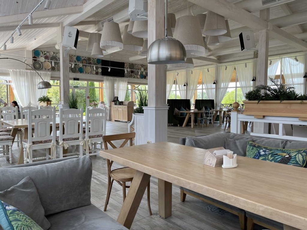 Вместимость зала — 100 посадочных мест с двумя летними террасами. Отлично подходит для проведения свадеб, юбилеев и корпоративов. Площадка оснащена профессиональным мультимедийным и музыкальным оборудованием.