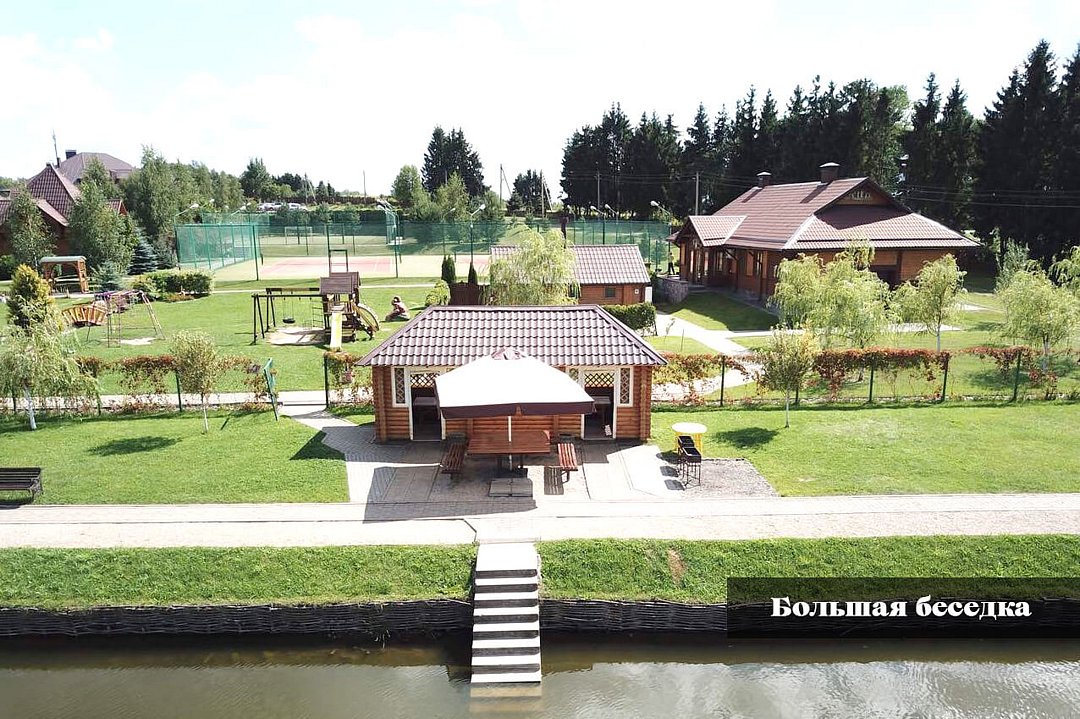 Общая площадь базы составляет 4,7 га. Территория представляет собой комплекс, состоящий из восьми благоустроенных коттеджей (деревянный брус), ресторана, деревянной бани, СПА-комплекса, футбольного поля, теннисного корта, искусственного водоёма с беседками. Для детей предусмотрена детская игровая площадка.