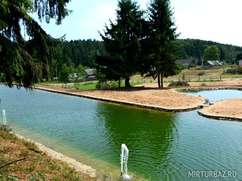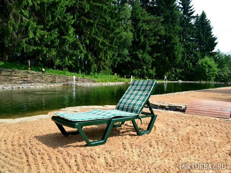Можно искупаться в искусственном пруду или просто позагорать на лежаках.
