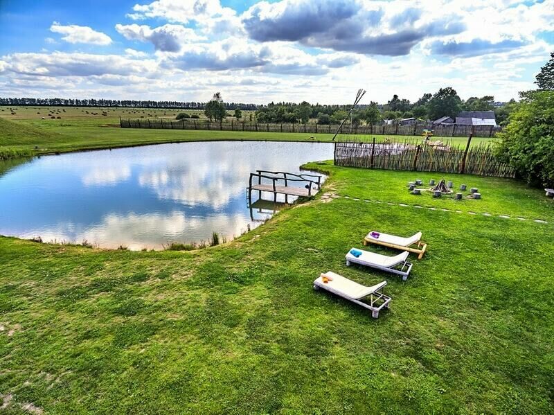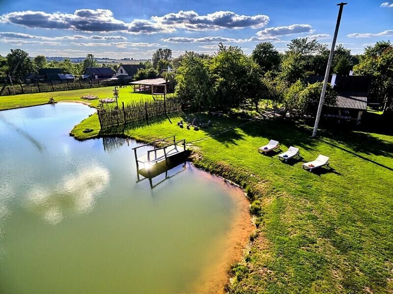 На территории есть собственное озеро, где можно купаться и рыбачить (водится рыба: карась, щука, сом, плотва, раки). Гостям предоставляются удочки.