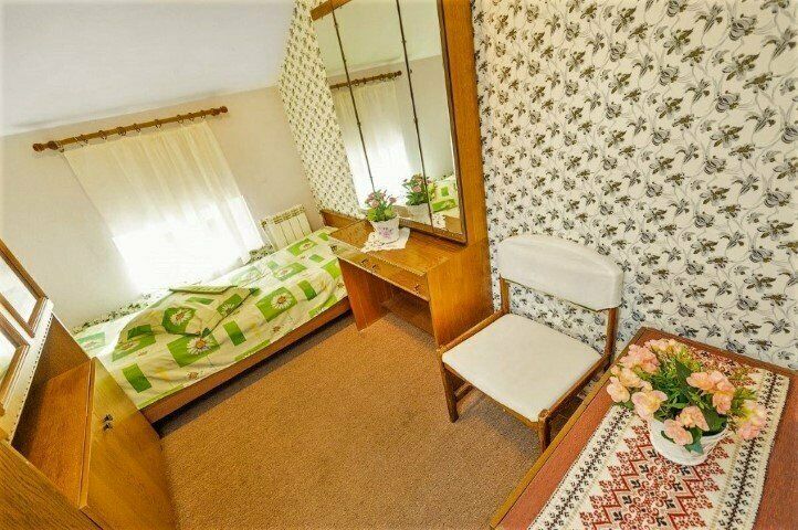 - Комнаты: 1- двухместная спальня, 4- трехместные спальные комнаты, гостиная, кухня, банкетный зал