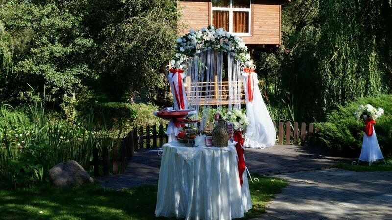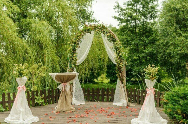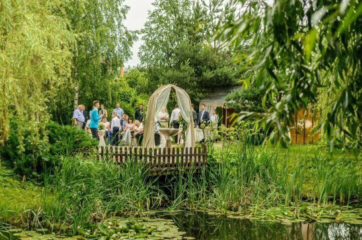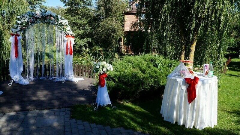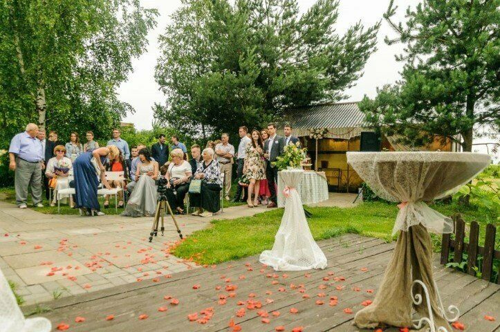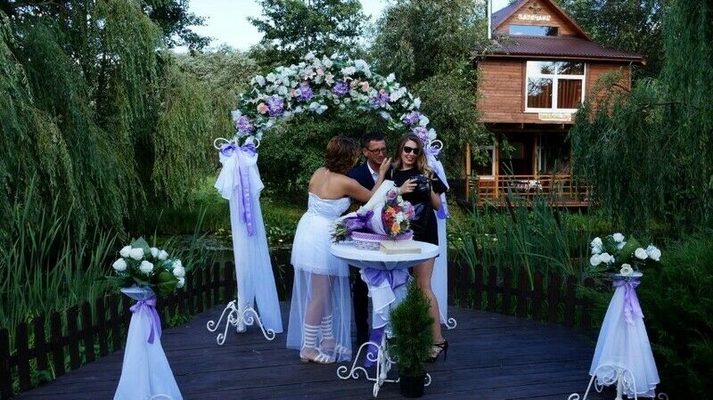 Вам предлагается провести свадьбу с выездной регистрацией, как в романтических фильмах. Декор, выполненный своими руками, шатер на 200 человек, дом над водой для новобрачных и блюда, приготовленные в русской печи. Красивая природа и уникальный декор усадьбы – лучшее место для фотосессии. А утро новобрачных в доме над водой превратит первый день законного брака в сказку.