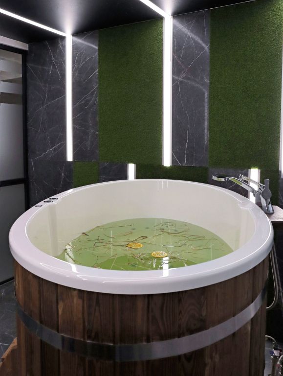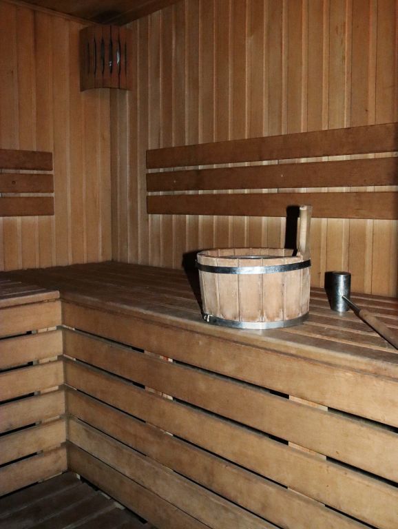 - парная, душ-ведро с леденящий водой, две кедровые бочки-купели (джакузи), раздевалки, душевые