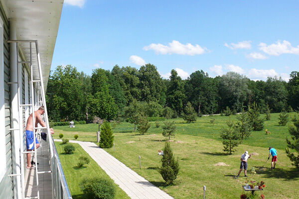 К услугам гостей - сауна, библиотека, бильярд, кабельное ТВ, танцевальный зал, летняя танцплощадка, настольный теннис, пляж у озера, автостоянка, гладильная комната, пункт проката.