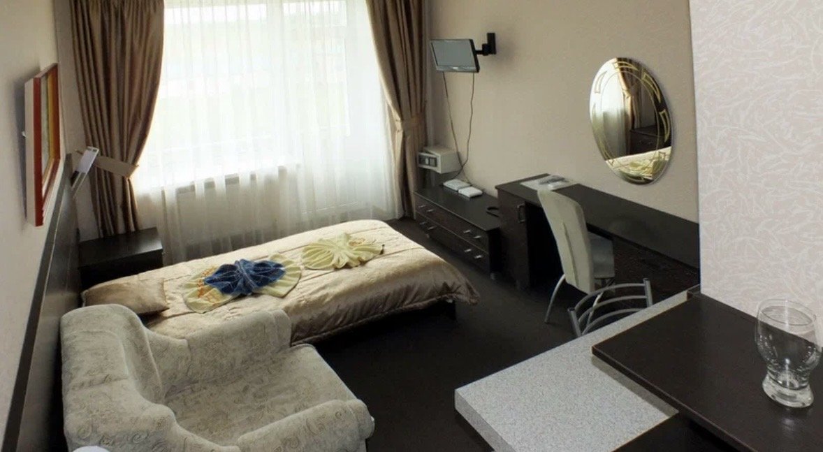 ДостоинстваОтличное обслуживание, комфортное размещение, доброжелательный персонал. Пятиразовое питание, вкусные блюда, заказное меню. Номера убирают чисто, на этаже есть кулер с горячей и холодной водой. В номерах светло и тепло, в санатории своя котельная. Дискотека несколько раз в неделю, трансляция фильмов по выходным дням. Разнообразный набор процедур для любого заболевания, есть платные услуги по приемлемым ценам.