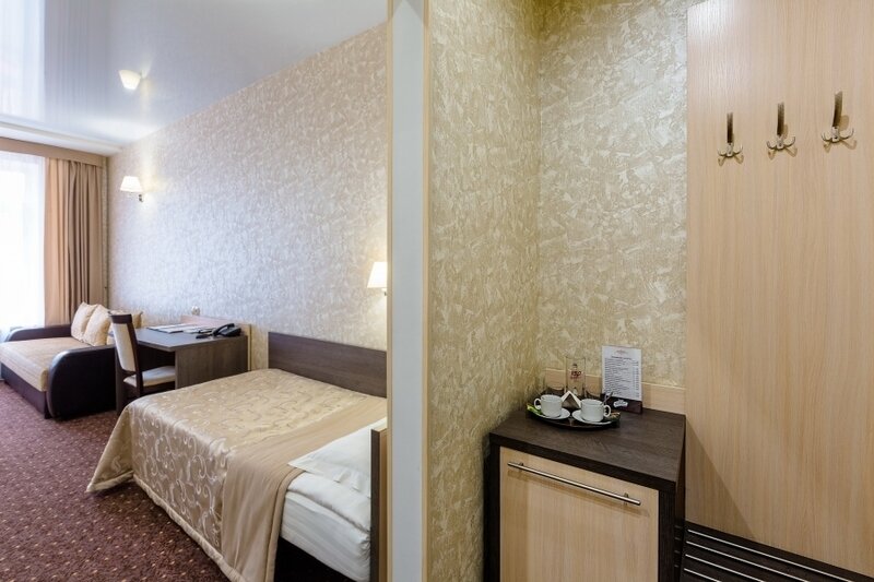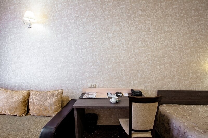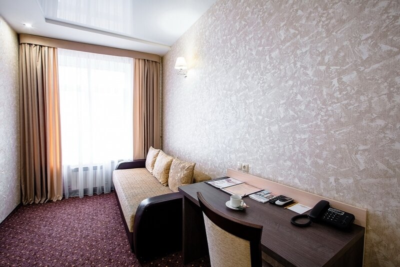 В номере был необходимый минимум для заезжего туриста ))) Окно выходило на внутренний двор , что я считаю плюсом в центре. Дают скидочные карту в ресторан «Ван Гог» . В общем и целом всё было хорошо, но есть то что не понравилось.