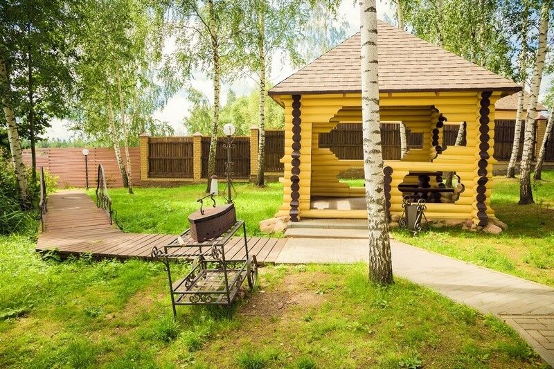 Русская баня, в отличие от саун, появилась в странах с холодным климатом, а значит, максимально нам подходит. Она дает чистоту, здоровье, душевное спокойствие, эмоциональный заряд и много других удовольствий. Недаром еще в древности говорили: «Войди в парилку хоть каким - а выйди добрым молодцем». В нашей бане есть все для душевного отдыха. Ее сердце - это, конечно, парная, которая топится только березовыми дровами. Рядом расположен пруд, в который приятно окунуться после жарких «банных объятий», а если не хотите - то бодрящий холодный душ. А после можно смело отправиться в комнату отдыха, рассчитанную на 6-8 человек. Здесь есть все необходимое для комфортного отдыха: холодильник, СВЧ-печь, электрочайник, посуда. На мангале, расположенном рядом с банькой, можно приготовить ароматный шашлык.