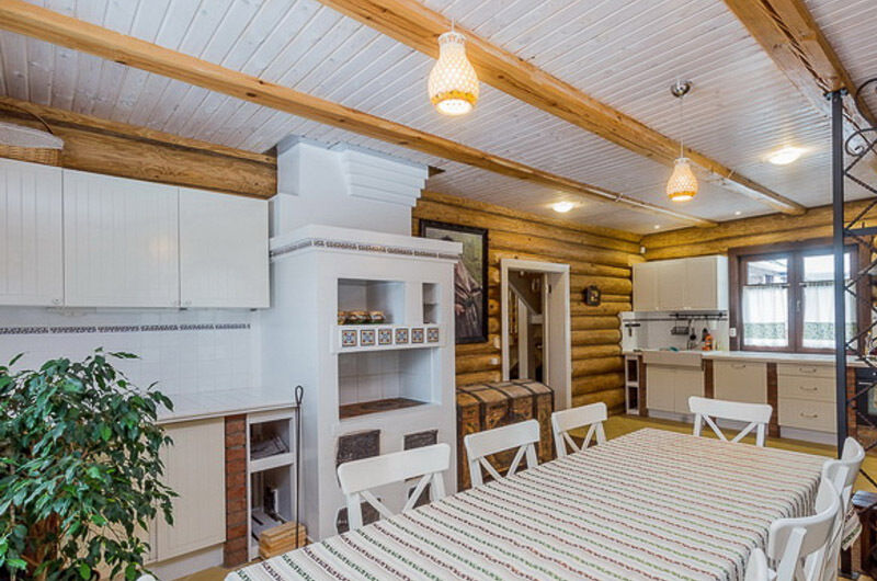 Оборудованная всей необходимой бытовой техникой кухня с настоящей русской печкой.