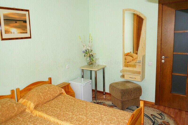 В номере две односпальные кровати, ванная комната, холл. Комнаты оборудованы всей необходимой фурнитурой. В номерах есть телевизоры, холодильники.