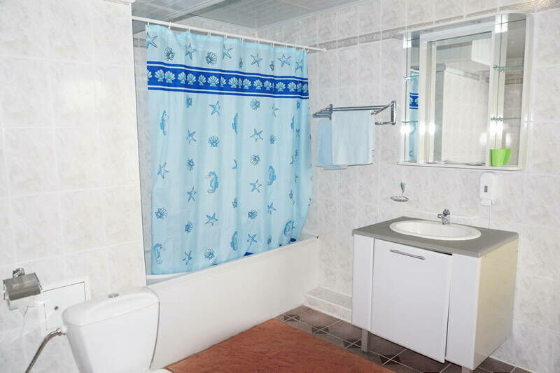 В номере спальня с двумя односпальными кроватями, ванная комната, гостиная с раскладным диваном, телевизор. Холл оснащен мини-кухней (столовые приборы, холодильник).