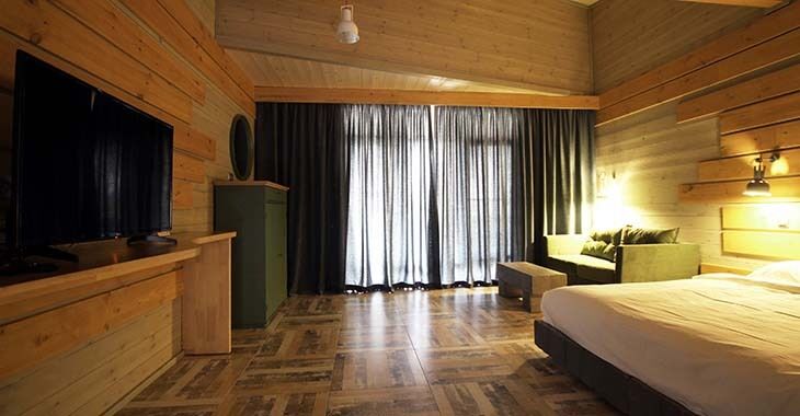Выбирая один из просторных номеров, Вы гарантированно получаете удобство и комфорт на время отдыха. В каждом номере есть гостиная зона с раскладным диваном и журнальным столиком, а также спальная зона с одной двуспальной или двумя односпальными кроватями на выбор. Современная техника, полы с подогревом, панорамные окна, высокие потолки и другие детали создают неповторимую атмосферу и делают пребывание приятным. Номера предназначены для комфортного размещения 2х взрослых, максимальная вместимость составляет 3 человека. Для самых маленьких гостей в номер по запросу будет бесплатно предоставлена детская кроватка-манеж.