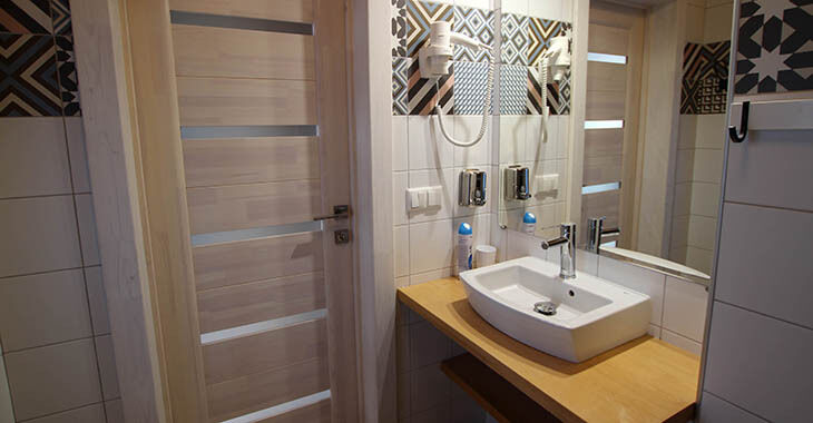 - Туалетные принадлежности: Жидкое мыло, туалетная бумага, гель для тела и волос, полотенца