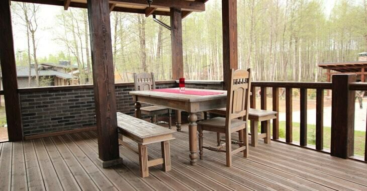 Терраса расположена с парадных сторон дома, она поднимает вас выше и с нее открывается вид на озеро – это идеальное место, где встает солнце и озаряет своими лучами весь дом.