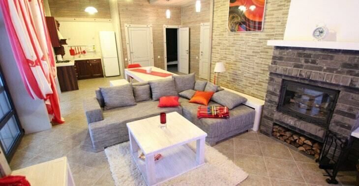 Для большего комфорта в доме две спальни и два санузла. В спальнях комфортные кровати, установлены кондиционеры. Просторная гостиная совмещена с кухней, на которой вы найдёте все необходимое для приготовления пищи. В доме большой стол, удобный диван и камин – всё это как нельзя кстати подходит для отдыха с семьёй или небольшой компанией.