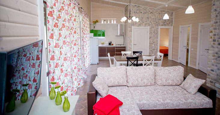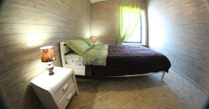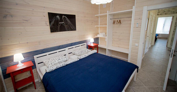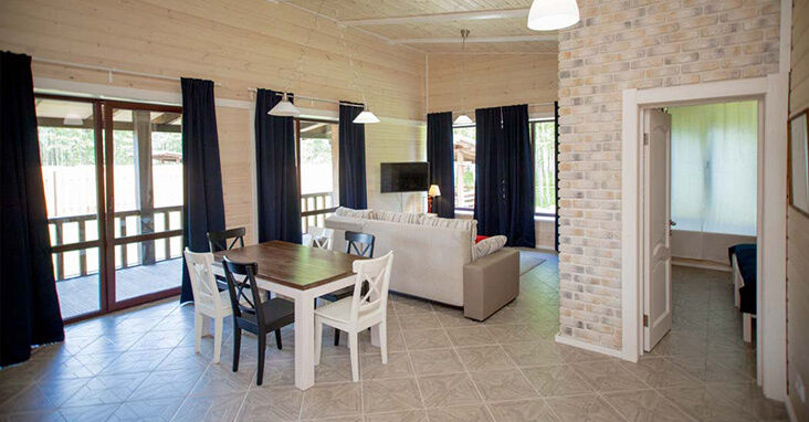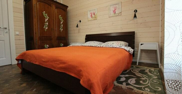 Дом у яблони – самый вместительный дом в Green Club, благодаря чему он стал идеальным вариантом для отдыха компаний до 8 человек. Дом находится в 70 метрах от озера. Прилегающая территория благоустроена: вымощенные дорожки, подсветка, зона барбекю, парковка. Интерьер в доме изящный, гармоничный и обладает незабываемой индивидуальностью.