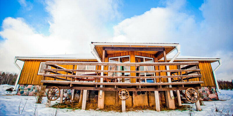 Вы можете снять деревянный домик на Браславских озерах, особенностью которого стала просторная терраса второго этажа. Кроме стандартного пакета удобств — необъятных кроватей, приветливой гостиной, аккуратных санузлов в этом домике вы получаете воздушность, чистый озёрный горизонт с деревянной террасы. Чем не порхание бабочки или не полет божьей коровки? Кроме того — дом разделён на две равноценные части так, что две компании гостей могут отдыхать, не мешая друг другу. Такой тип расселения даёт возможность проживания минимальному количеству гостей — 4 или 2, используя лишь часть дома без финансовых издержек.