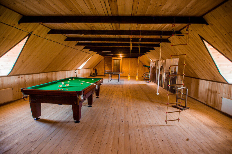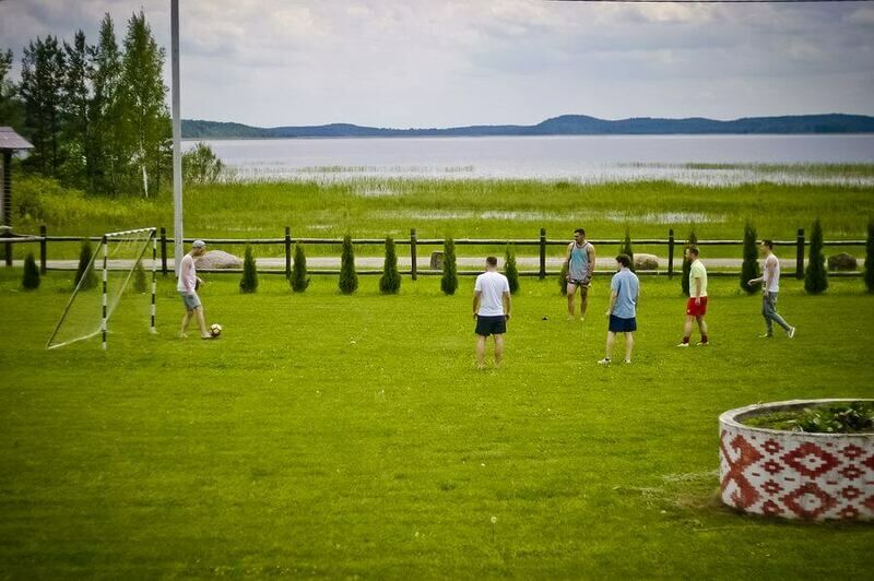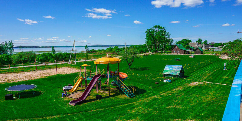 В Вашем распоряжении восемь гостевых домиков разной вместимости, баня, кафе, мангальная зона, снегоходы, квадроциклы, катамараны, настольный теннис, бильярд, спортивные и детская площадки и, конечно, пляж и кристально чистое озеро Снуды.