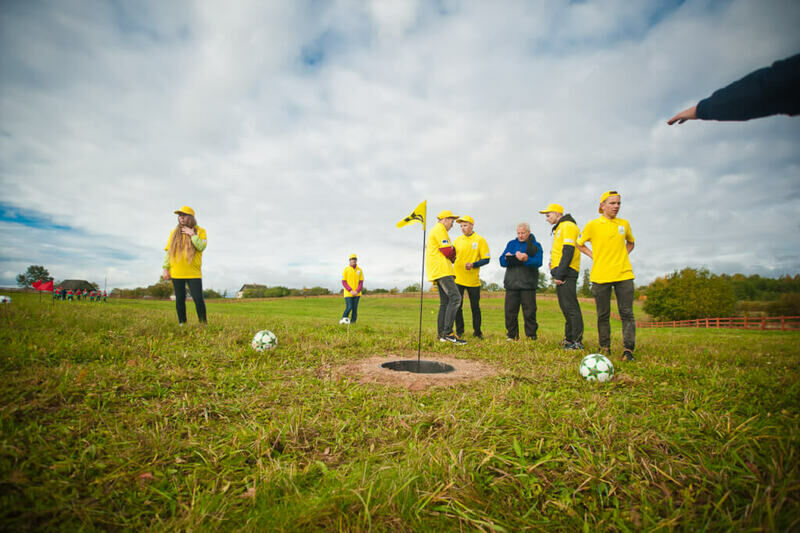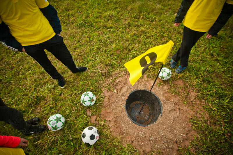 Это простой и доступный вид спорта, играть в который может любой человек вне зависимости от возраста или физической подготовки. Футгольф для малышей – отличная возможность дать родителям посидеть и отдохнуть, пока малыш гоняет мячик.