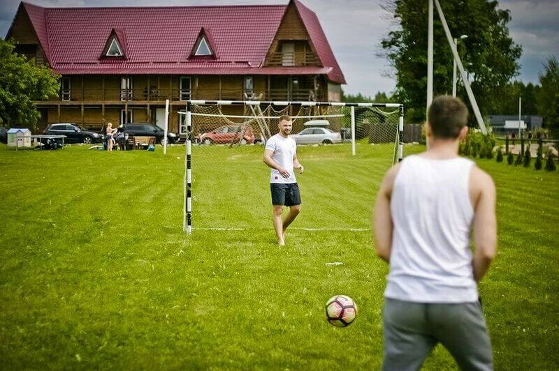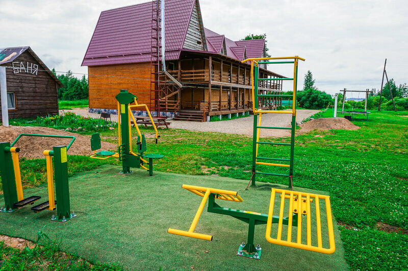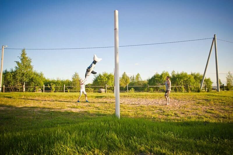 Для тех кто предпочитает активный отдых на свежем воздухе на территории располагаются волейбольная, футбольная, баскетбольная площадки, а так же площадка для игры в бадминтон. Для маленьких гостей предусмотрена площадка для катания на самокатах и роликовых коньках.