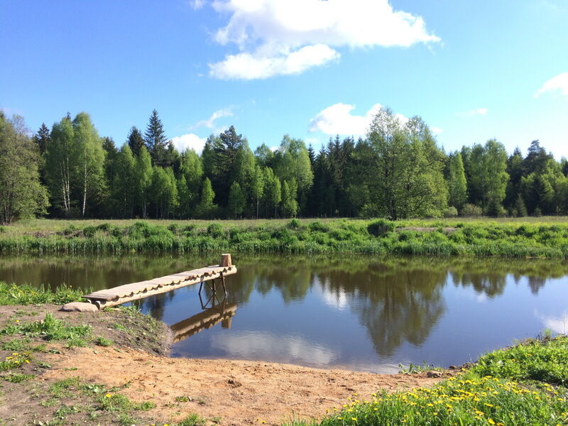 Пруд возле базы. Кладка длинная и купальня.