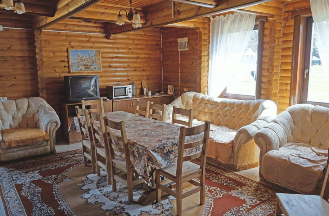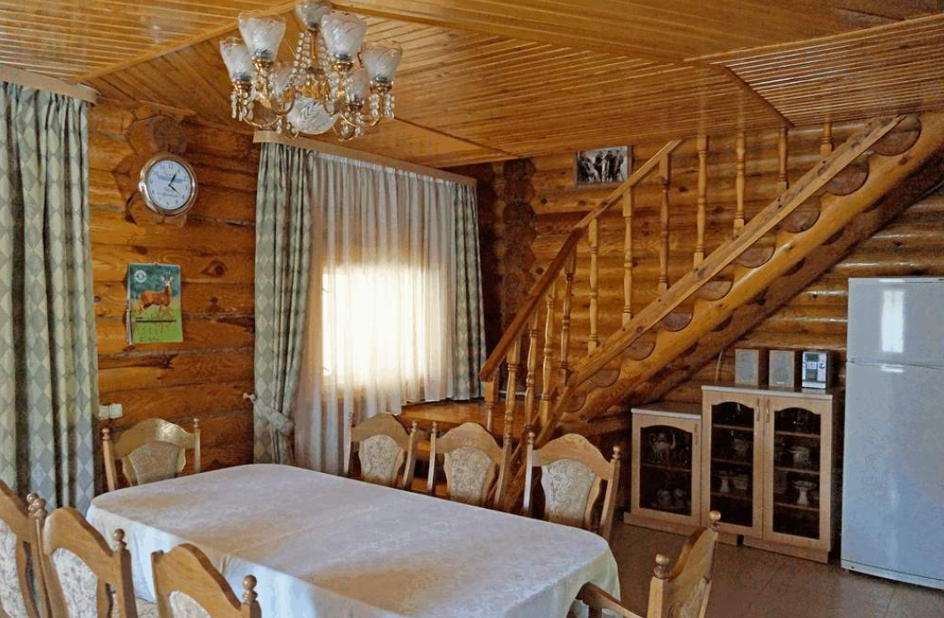 В коттедже есть 3 номера: два двухместных номера с двумя односпальными кроватями в каждом из них, один одноместный номер с двуспальной кроватью. В данном коттедже можно погреться у камина в гостиной с телевизором. Есть кухня (газовая плита, холодильник, СВЧ - печь), ванная комната (душ, туалет), wi–fi. Весь коттедж оснащен необходимой фурнитурой.