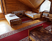 Двухэтажный коттедж с 6 комнатами. На первом этаже 3-местный 2-комнатный номер со смежным санузлом (душ, туалет) - в 1 комнате двуспальная кровать, во 2 комнате 2 односпальные кровати. На этаже в холле расположен мягкий уголок, холодильники, телевизор, микроволновая печь, чайник. На втором этаже 4 номера: 2 номера по две односпальные кровати в каждом, 1 номер с 3-мя кроватями в номере, 1 номер с 4-мя кроватями в номере. На этаже есть ванная комната (душ, туалет). Весь коттедж оснащен необходимой фурнитурой.