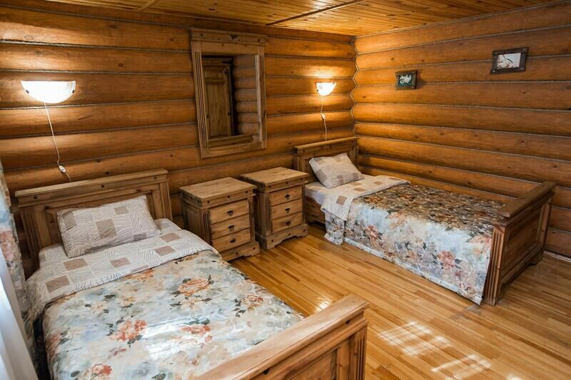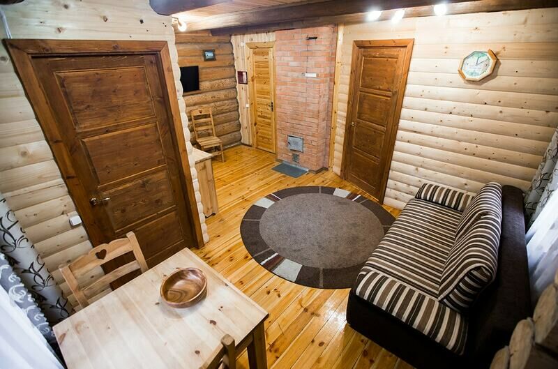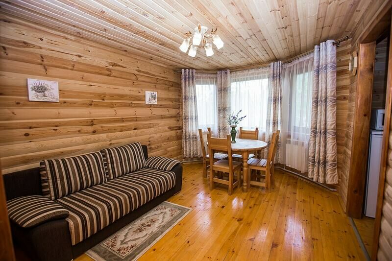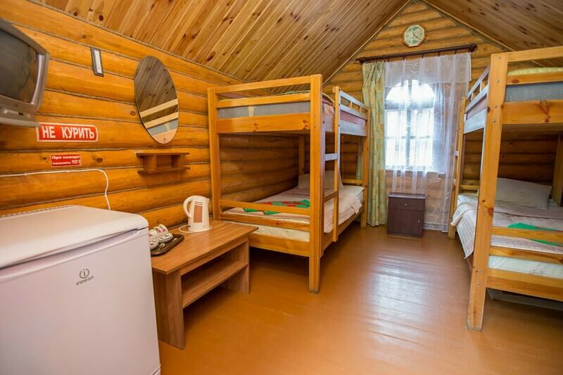 Предлагается проживание в двухэтажных комфортабельных коттеджах с удобствами, холлы с каминами и мягкой мебелью. В каждом номере телевизор, холодильник, ортопедическая мебель.