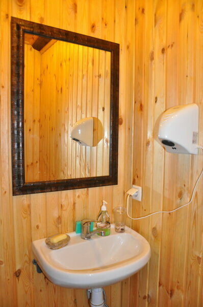 Две санитарные комнаты (на первом и втором этажах) с душевыми кабинами, горячей водой и всеми коммуникациями. Полотенца бесплатны (выдаются по запросу).