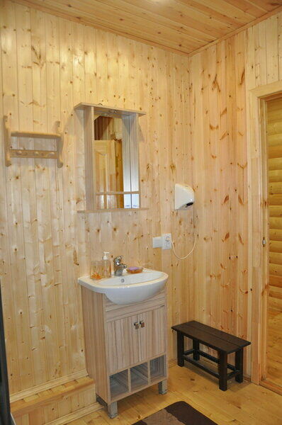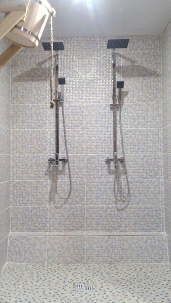 Санузел со всеми коммуникациями и большая душевая комната на несколько человек.