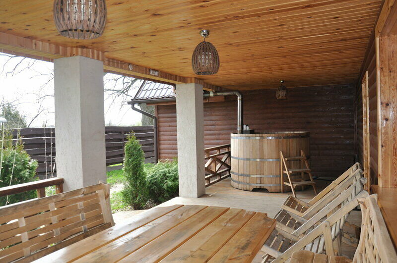 Возле дома имеется зона отдыха на улице. Она спрячет Вас от солнца и позволит расположить большую компанию людей. Возле беседки есть мангал. Шампуры и дрова выдаются бесплатно и входят в стоимость проживания.