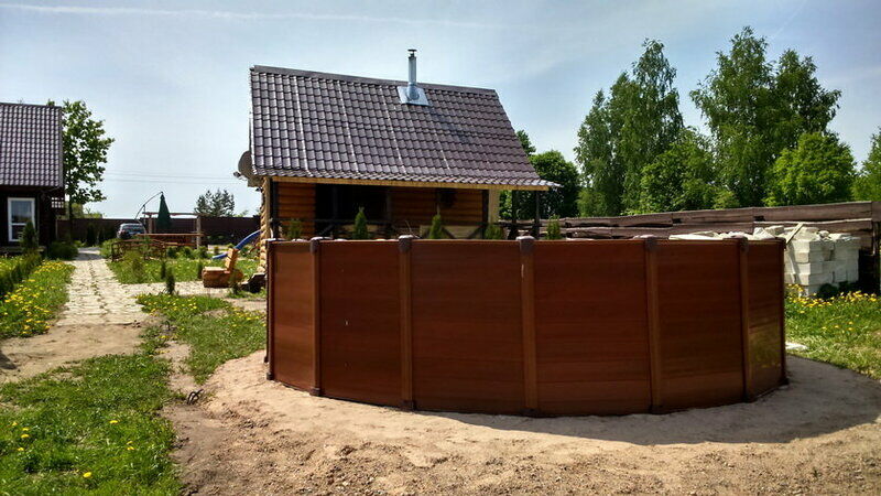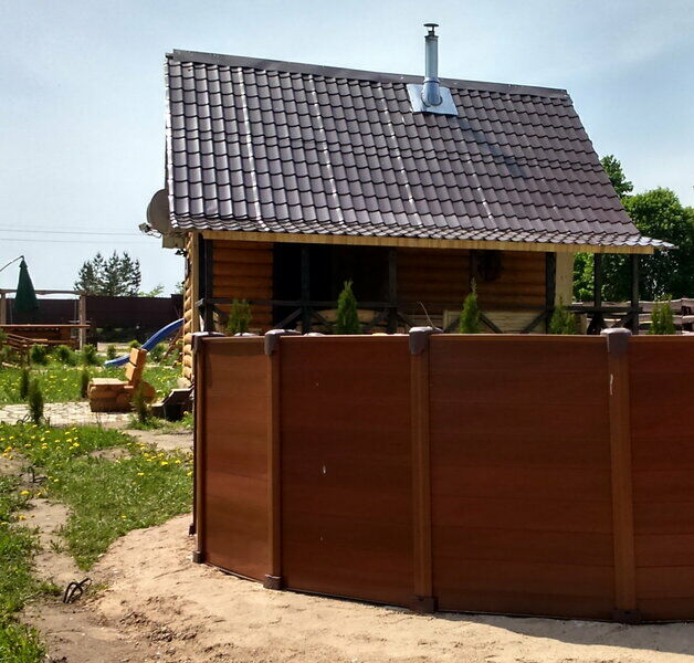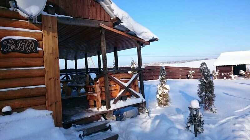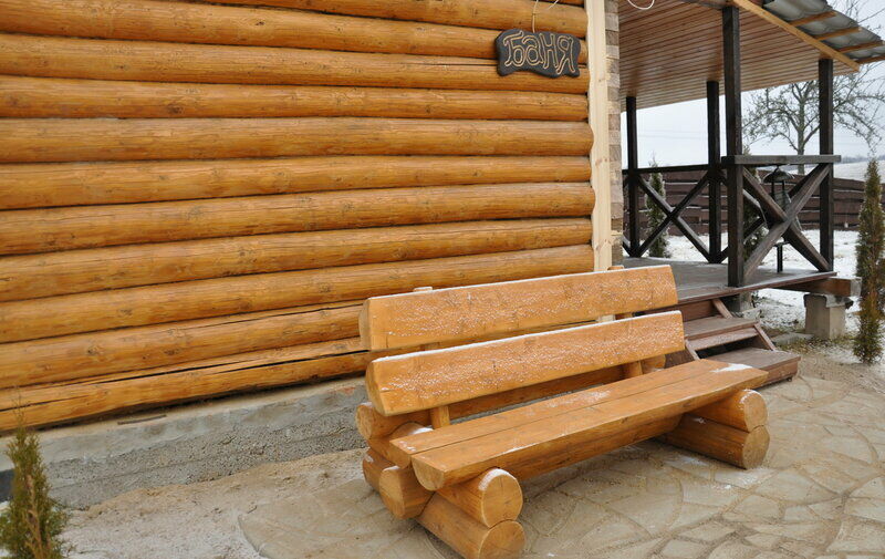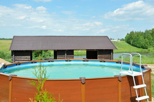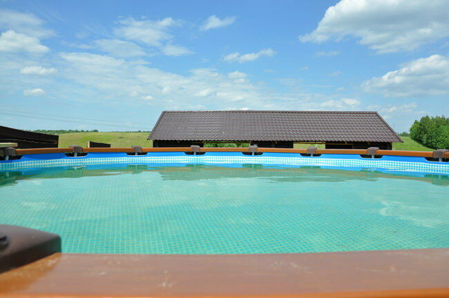 - Возле бани есть большой бассейн, который доступен в теплое время года.