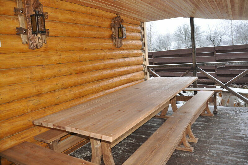 Зона отдыха на улице, которой можно пользоваться бесплатно при посещении сауны. Здесь находиться стол для приятного отдыха и мангал.
