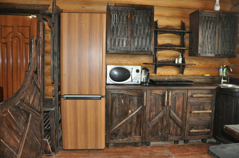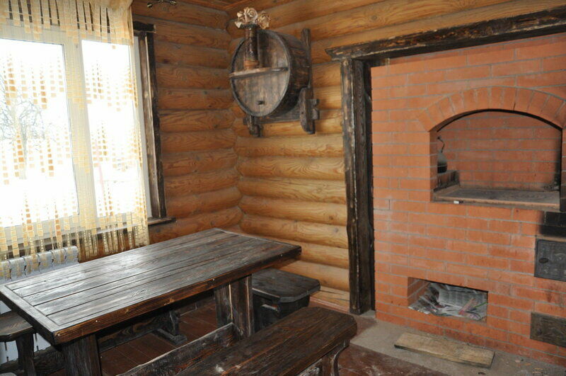 Для приготовления блюд имеются кастрюля, сковорода, а также разделочные доски и ножи. Также на кухне есть стол от 8 персон и настоящая печь, с возможностью приготовить блюда на ней.