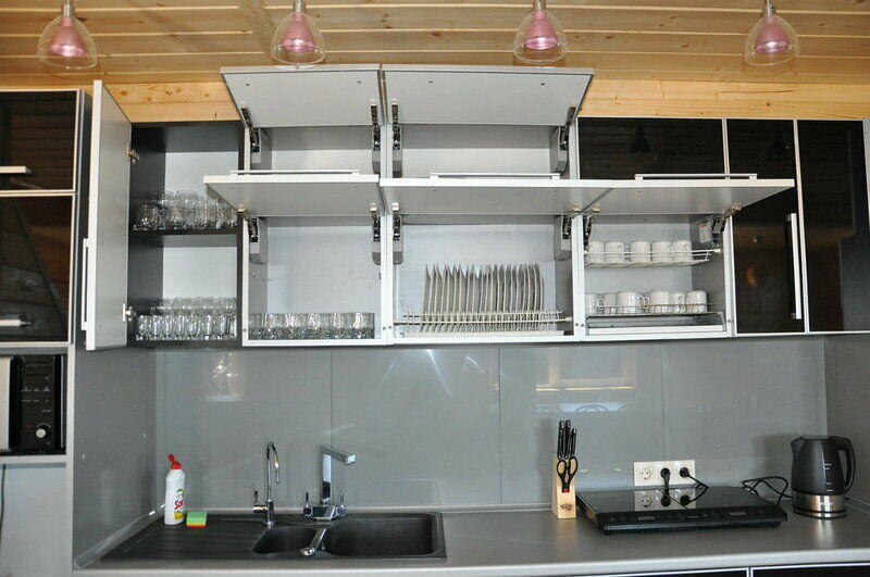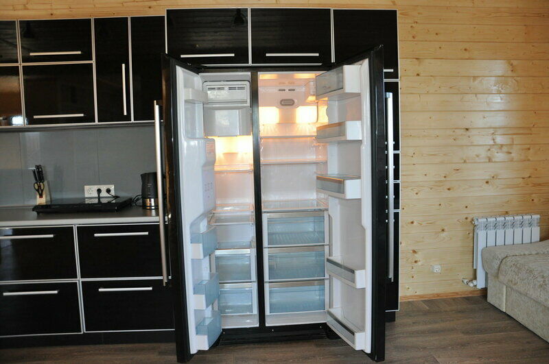 Из бытовой техники присутствует: Холодильник Bosch side-by-side, электрическая варочная панель, микроволновая печь, чайник. Для каждого постояльца у нас есть набор посуды (тарелки, рюмки и бокалы, стаканы, столовые приборы, чайный сервиз).